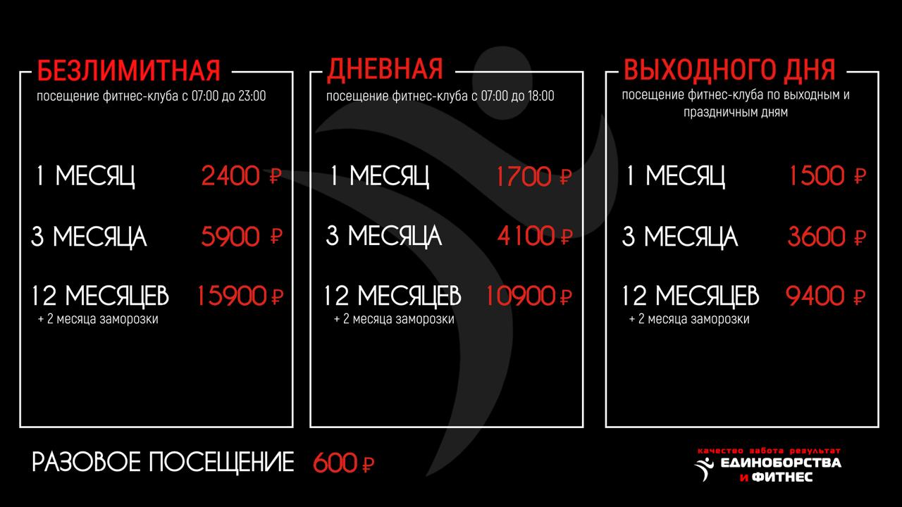 Стоимость услуг фитнес-клуба "Единоборства и фитнес"